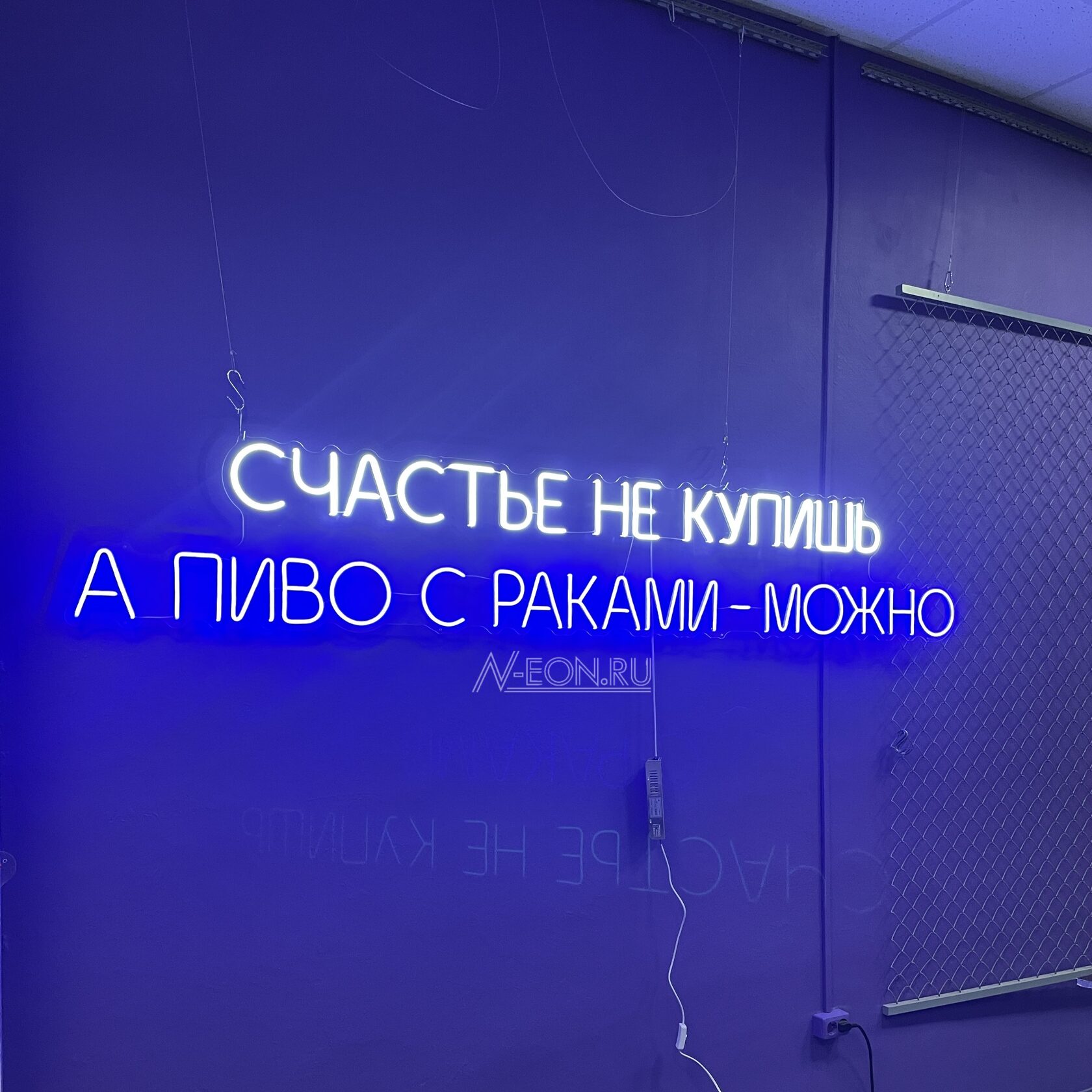 Неоновая вывеска Счастье не купишь. А пиво с раками - можно🍻🤣