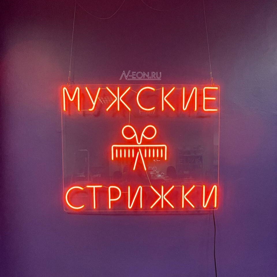 Неоновая вывеска «Мужские стрижки» ✂️с ножницами и расчёской — это стильное и функциональное решение для оформления входной группы или интерьера барбершопа. Такой дизайн подчеркнёт профессионализм и создаст уютную атмосферу.