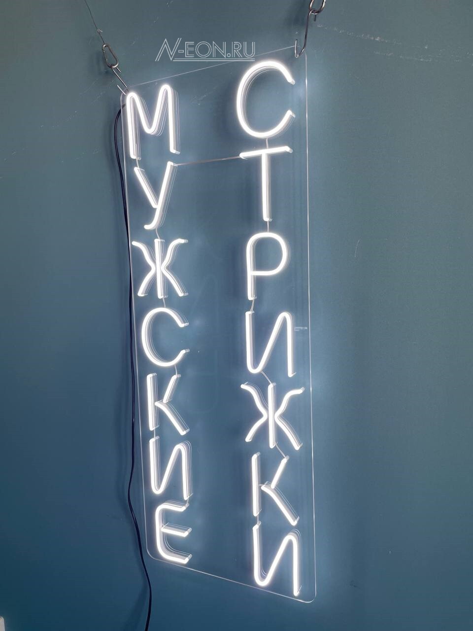 Вертикальная неоновая вывеска «Мужские стрижки» —📏 это заметный элемент, который идеально подойдёт для оформления окон вашего салона. Её лаконичный дизайн и яркий свет привлекут внимание прохожих и подчеркнут профессионализм вашего бизнеса.