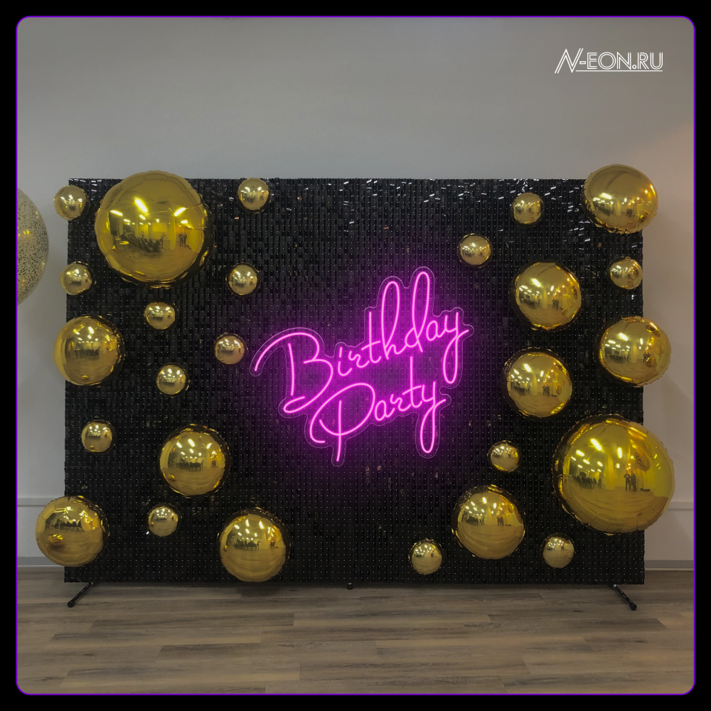 Неоновая вывеска "Birthday Party" ✨ с красивым шрифтом — это элегантный акцент для вашего праздника. Яркие цвета и изысканный дизайн привлекут внимание гостей и создадут атмосферу роскоши. Идеально подходит для вечеринок, юбилеев и фотозон.