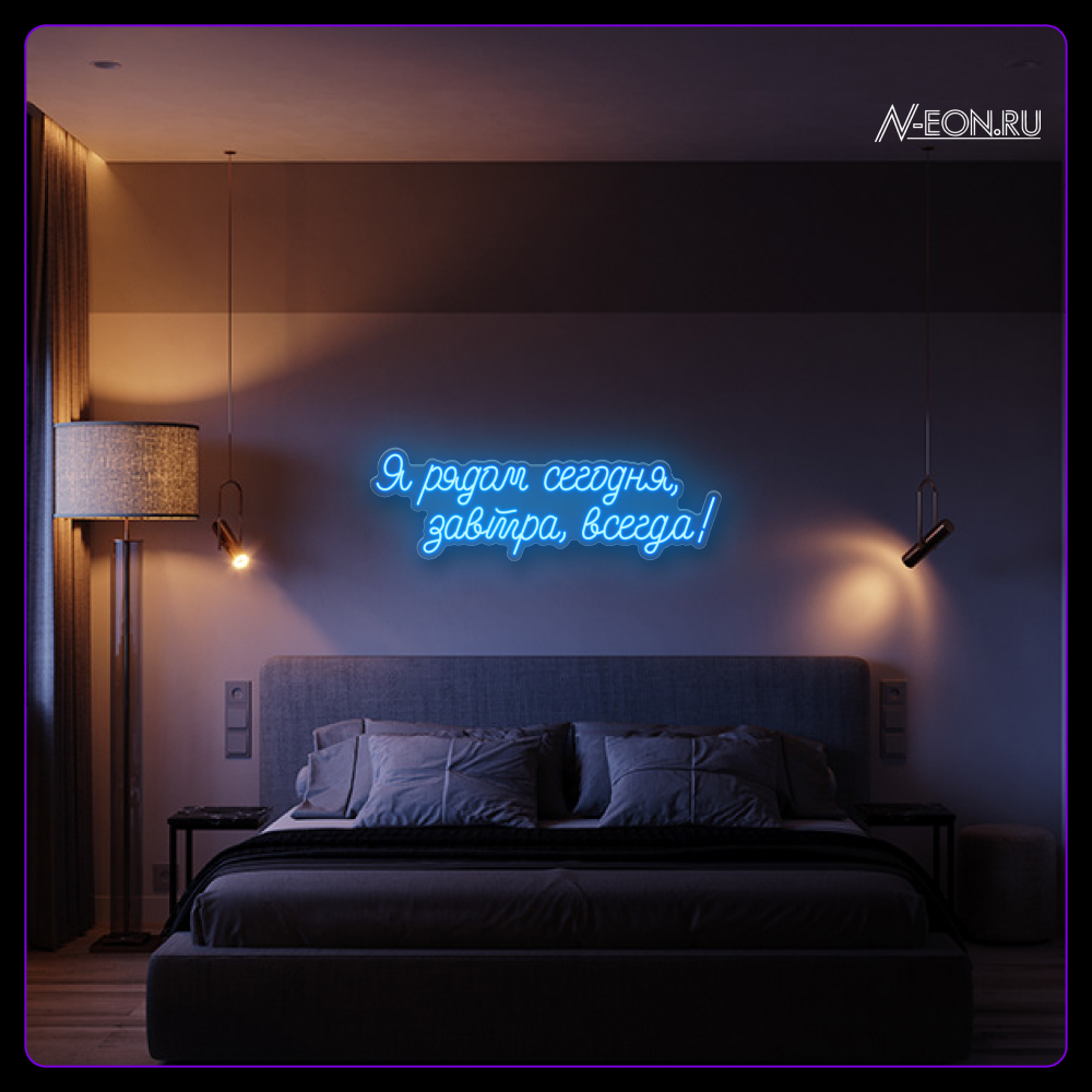 Неоновая вывеска "Я рядом сегодня, завтра, всегда!" 💖✨ станет символом вашей верности и преданности. Этот стильный элемент декора создаст атмосферу любви и поддержки, напоминая о том, что настоящие чувства всегда сохраняют связь, независимо от расстояний.