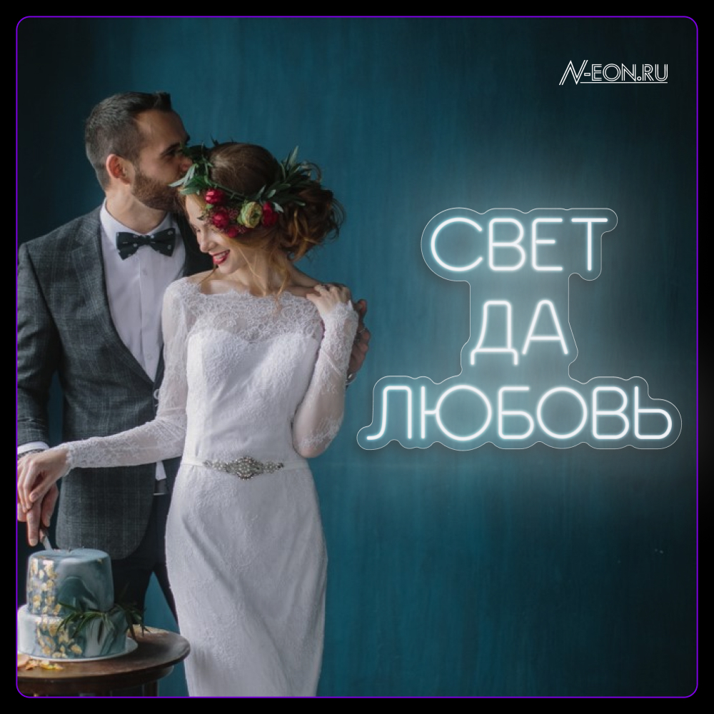 Неоновая вывеска "Свет да любовь" — это идеальный элемент декора, который добавит ярких эмоций вашему празднику. Ее мягкое свечение и стильный дизайн создадут атмосферу счастья и радости на свадьбе или в домашнем интерьере.