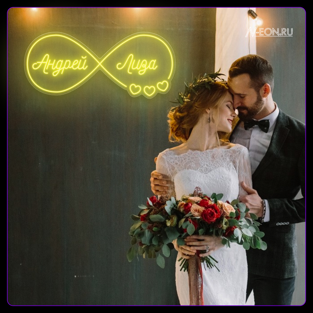 Неоновая вывеска - Знак бесконечности с именами молодоженов (Андрей & Лиза)