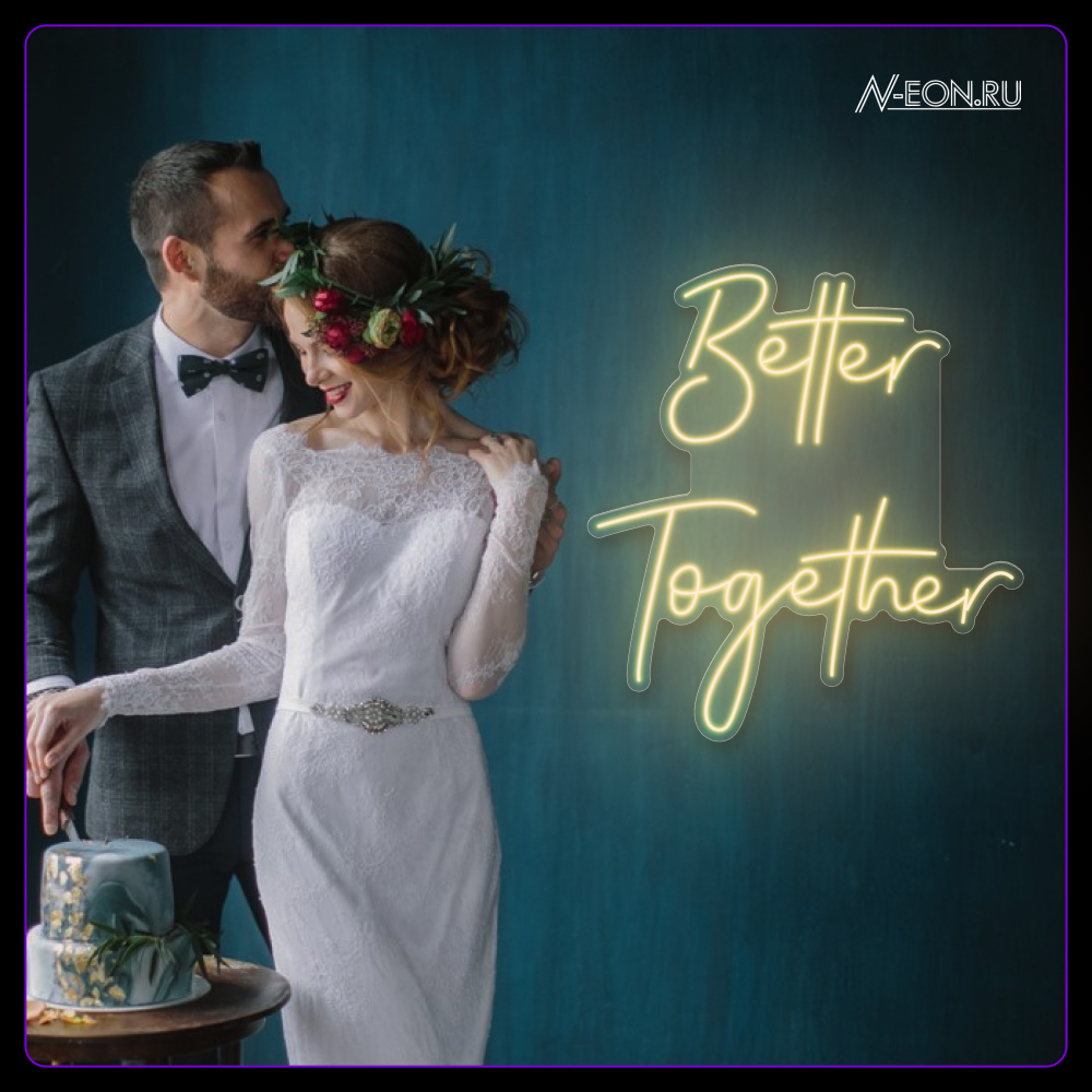 "Better Together" — это универсальная неоновая надпись, которая станет ярким акцентом на свадьбе, фотозоне или в домашнем интерьере. Ее стильный шрифт и мягкое свечение создадут уютную атмосферу.