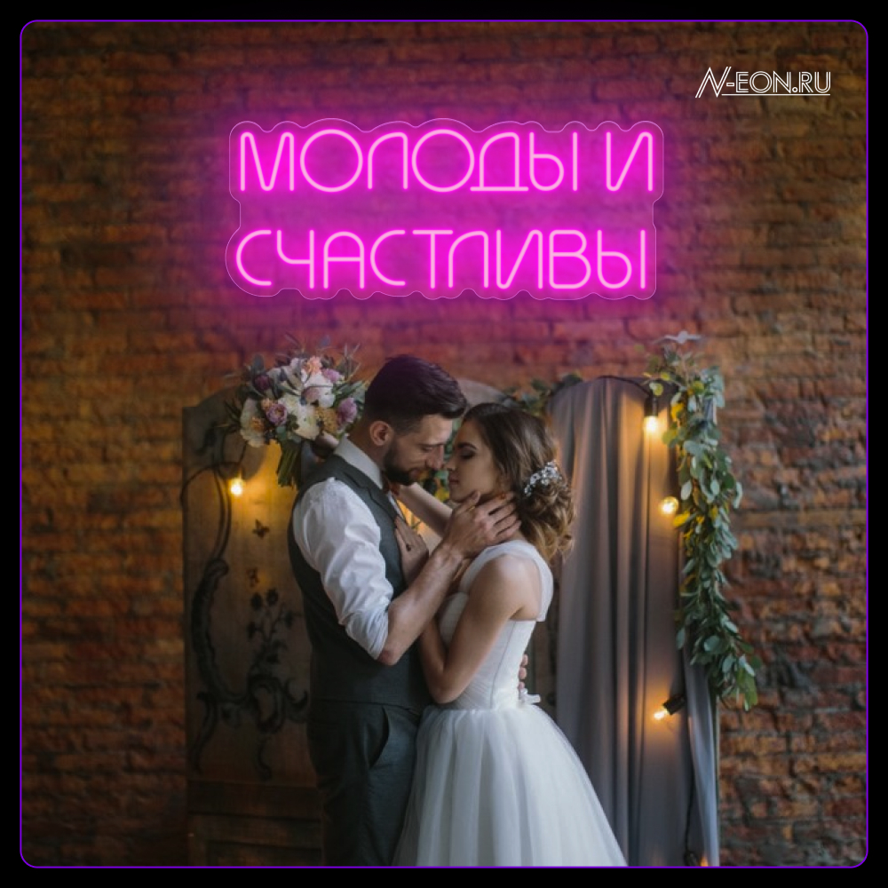 Неоновая надпись "Молоды и счастливы" — это идеальный элемент для свадебного декора, который подчеркнет радость вашего особенного дня. Яркое свечение и стильный дизайн создадут незабываемую атмосферу на вашем празднике.
