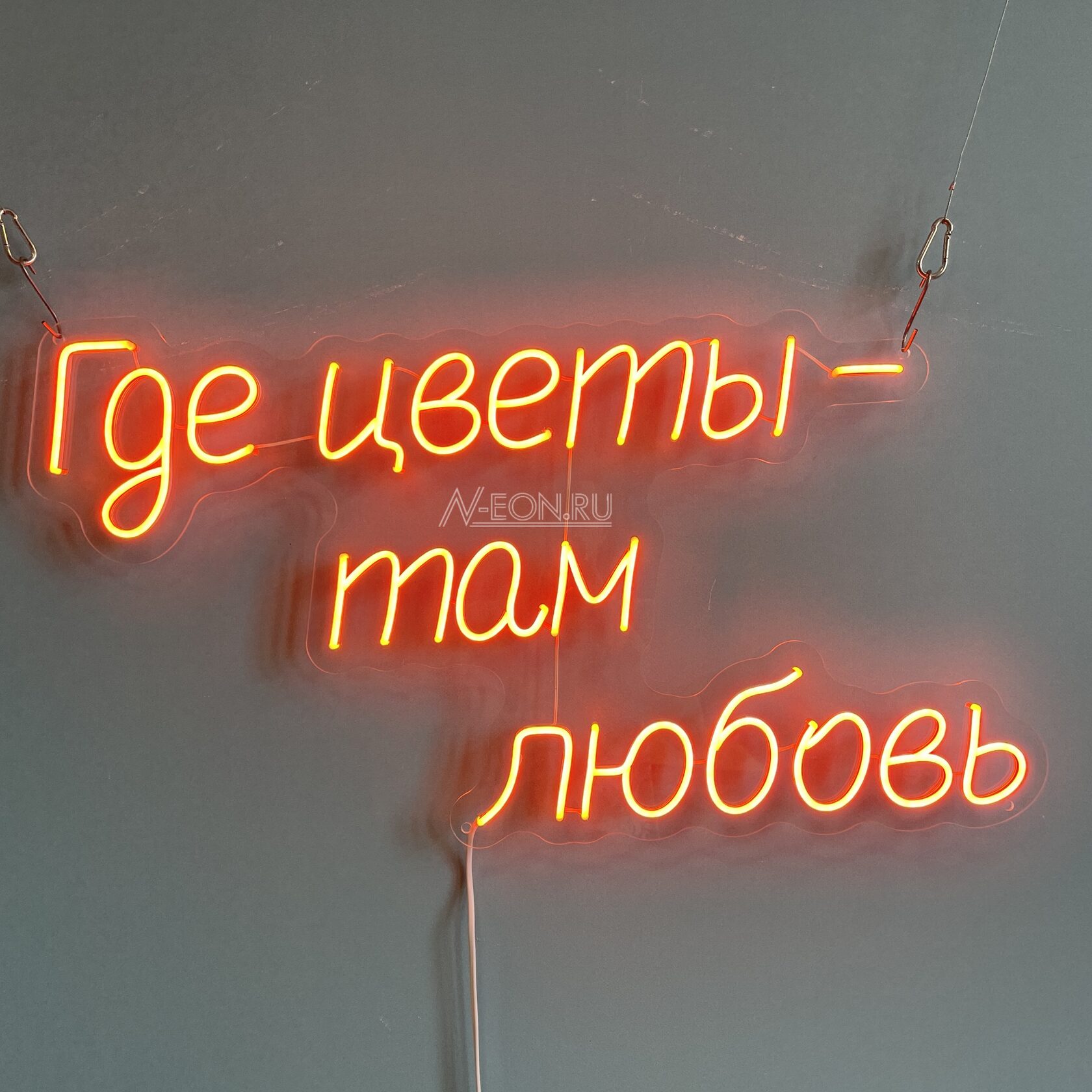 🌹 Неоновая вывеска "Где цветы — там любовь" станет ярким акцентом вашего магазина. Привлекает романтиков и создает атмосферу тепла. 💕 Неоновая вывеска цветы и любовь, романтика, стильный декор.