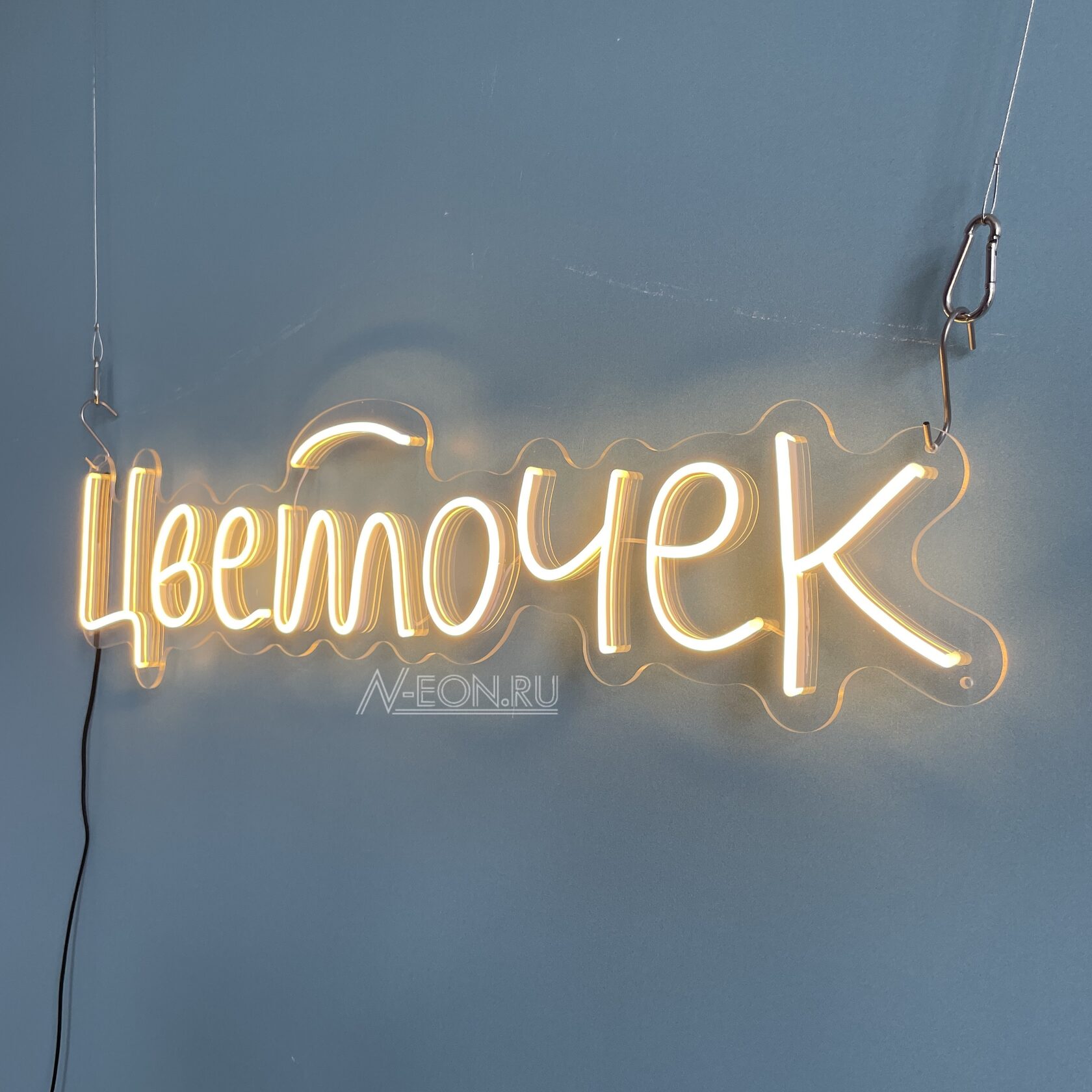 Если вы хотите изменить размер, форму основания, расположение слов, подобрать другой шрифт или другие характеристики вывески, укажите это в комментарии к заказу. Если вы желаете купить неоновую вывеску по индивидуальному эскизу на заказ, напишите нам здесь.