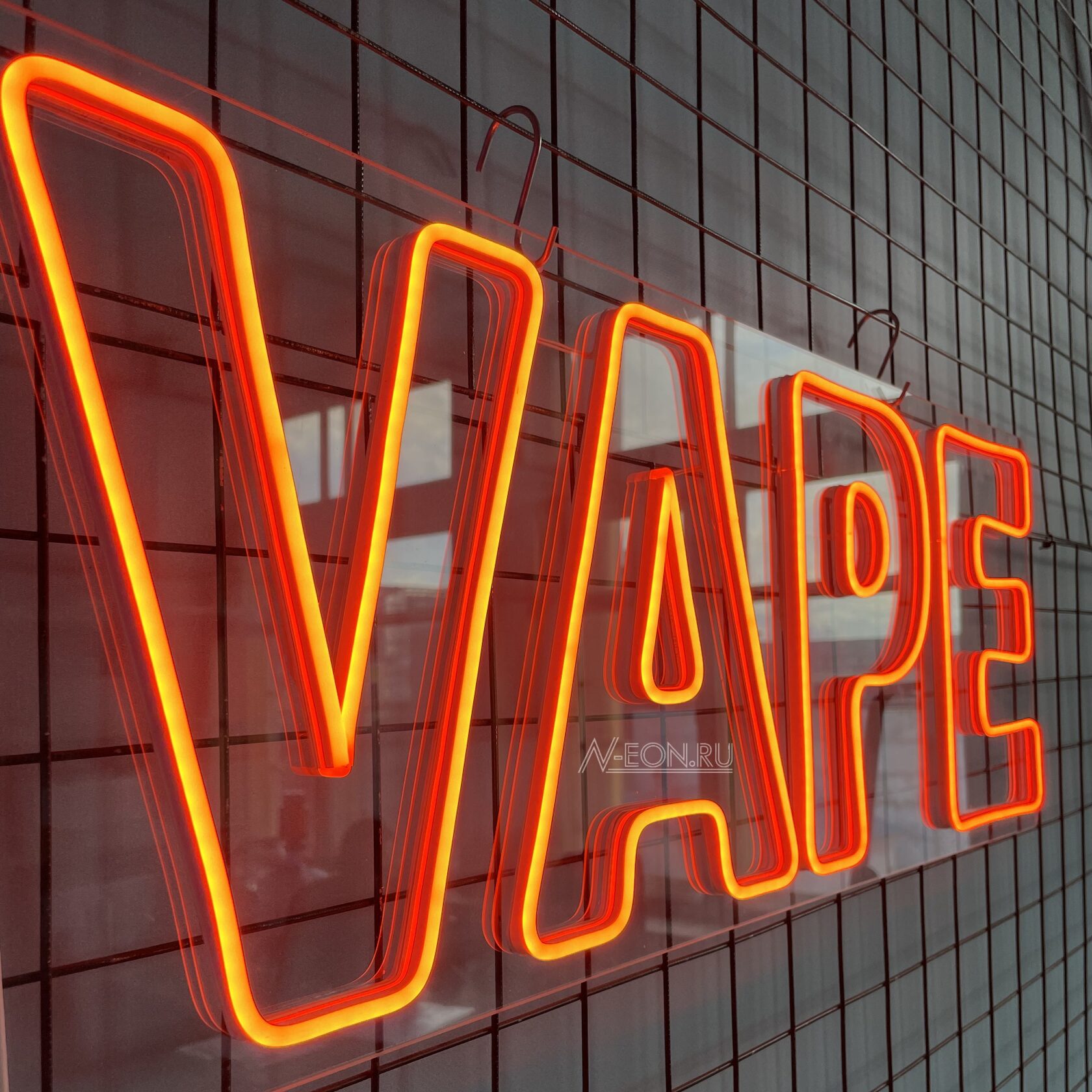 💨 Неоновая вывеска "VAPE" объемным шрифтом подчеркнет современный стиль вашего магазина. Яркий свет привлечет молодежь и любителей вейпов. Идеально для витрин и интерьера. 🚬 Неоновая вывеска вейп, стильный декор, вывеска для магазина.